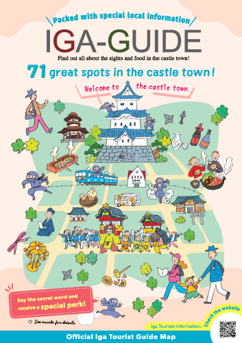 | 伊賀城下町の見どころ・食べどころ・まるわかり! 忍者や松尾芭蕉、歴史情緒あふれる伊賀ならではを満喫できる城下町の楽しみ方のほか、マップ面には観光施設や店舗の情報を掲載しています。 |
