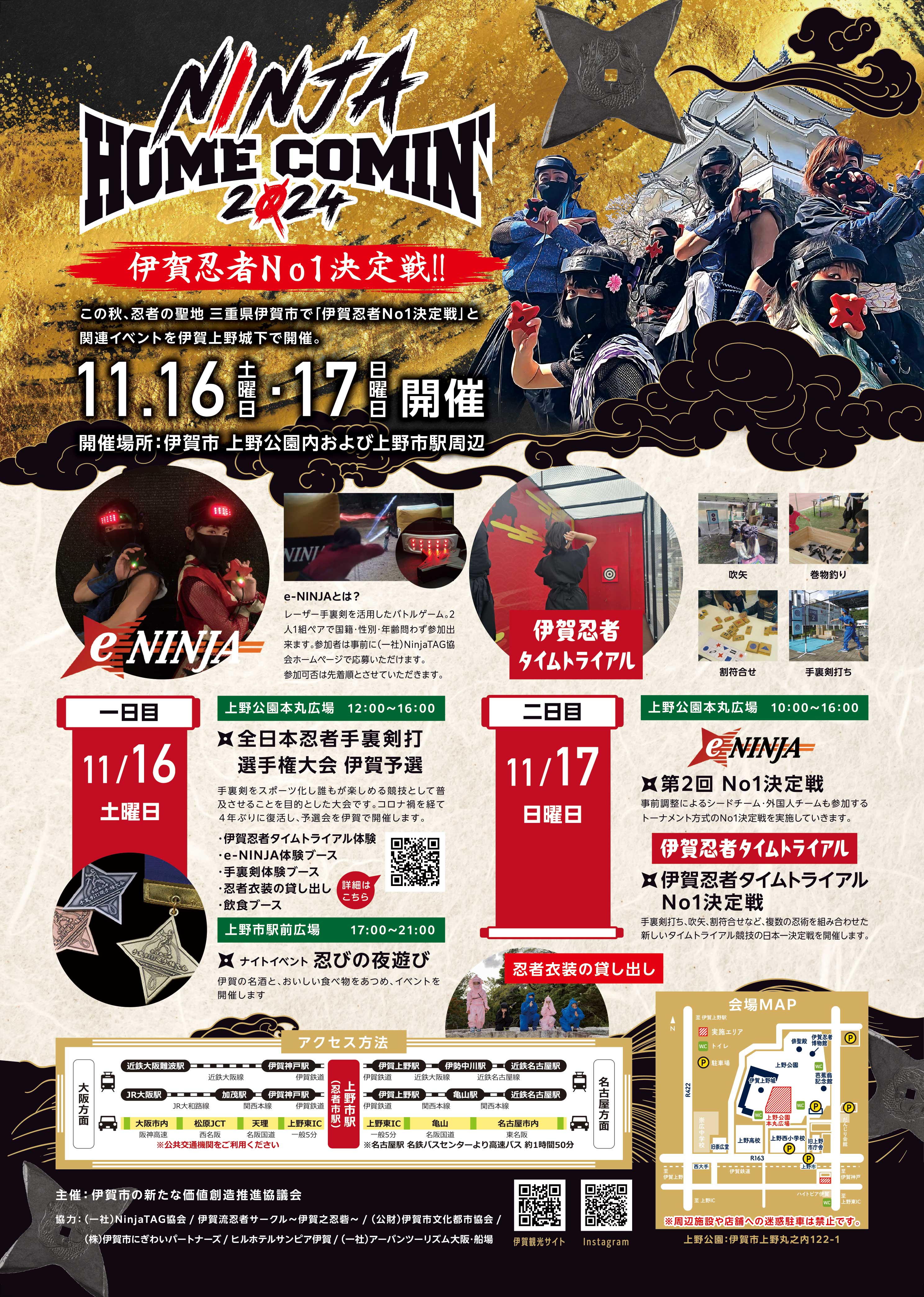手裏剣打ち、吹矢、割符合せなど、複数の忍術を組み合わせた新しいタイムトライアル競技の日本一決定戦を開催します!